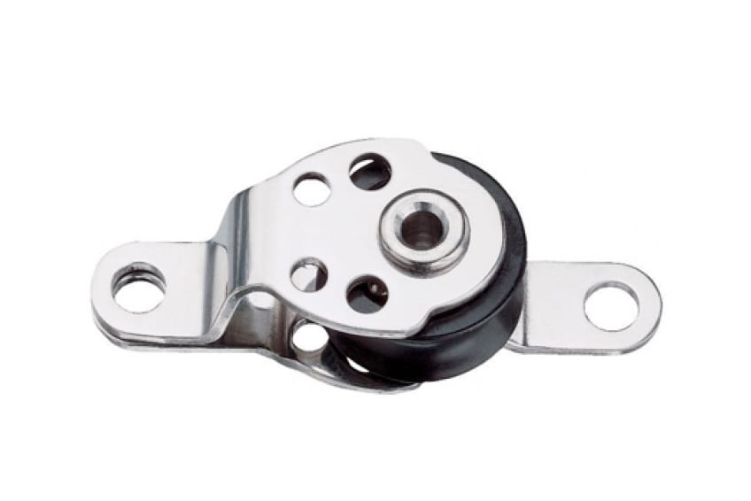 Der liegende 16mm Umlenker wird mit zwei Schrauben befestigt. Er lenkt Kontrolleinen direkt auf Deck um.
